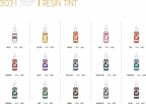 Adjunk pár csepp színezőt a már bekevert gyantához. Az összemért gyantához viszonyítva maximum 5%-nyi színezőt használjunk. A színek rendkívül élénkek lesznek. 15 színben kapható.